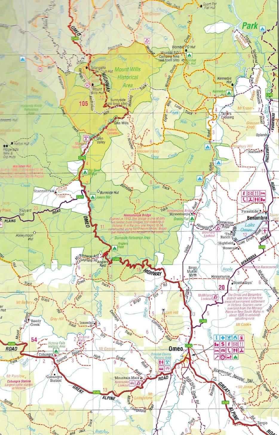 south, through Emu Creek to Innesfail, down to Victoria Falls – to High Forest Road, which will bring you out onto Great Alpine Road for your small trip back into Omeo to wash up and relax.