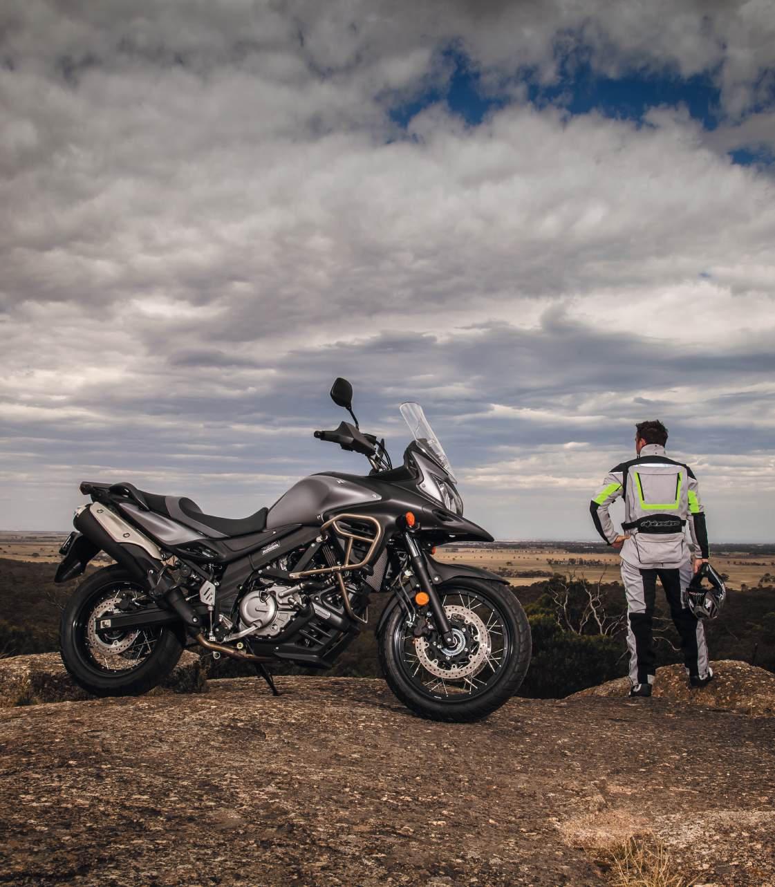 Stuart is wearing a Shoei NXR helmet, Yamaha MT Techno jacket, Held Backflip gloves, Draggin jeans and Sidi Vertigo boots.