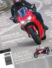 Asmost of you know, I have been with The Bear since late 2008. He feels my “apprenticeship” has been served and it’s now time to do it all. While it may seem I will have more work to do, not all that much will change. I have been doing most of the mag for a long time now and The Bear and I work well together, bouncing ideas off each other and producing what is most definitely the best motorcycle magazine in the country (in our humble opinions). Some of you know who I am, where I’ve been, but for those who don’t, I started out my working life as a panelbeater and did that for ten years. Now you know why I’m so fussy with paintwork and fit and finish on a motorcycle, and now you can be told that when we had our award winning Yamaha Bolt outfit painted by one of Australia’s leading painters – 2SUS Custom Resprays - Bassar (the owner) was my apprentice when I was tradesman.