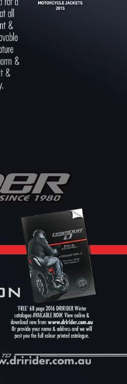 This publication is copyright. Other than for the purposes of research, study, criticism, review, parody or satire and subject to the conditions prescribed under the Copyright Act 1968, no part of this publication may be reproduced, stored in a retrieval system or transmitted without the prior written permission of Australian Motorcyclist Magazine Pty Ltd. Opinions expressed within this publication do not necessarily represent those of Australian Motorcyclist Magazine Pty Ltd. No responsibility is accepted by Australian Motorcyclist Magazine Pty Ltd or the editor for the accuracy of any statement, opinion or advice contained in the text or advertisements. Readers should rely on their own enquiries in making decisions tailored to their own interest.
