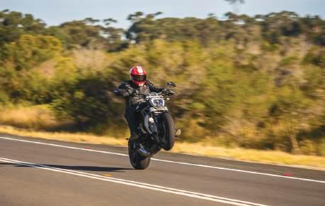 The second area, performance, is in one word – insane. Torque has been signifi cantly increased over the previous model and you might need to cuff yourself to the grips to give yourself a chance of keeping them on the handlebar.