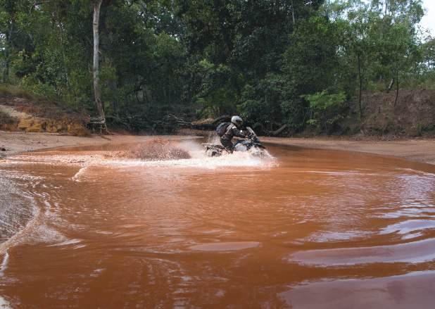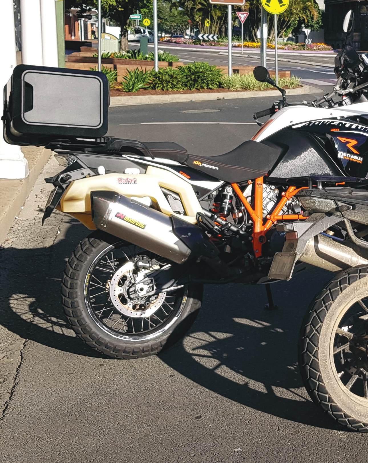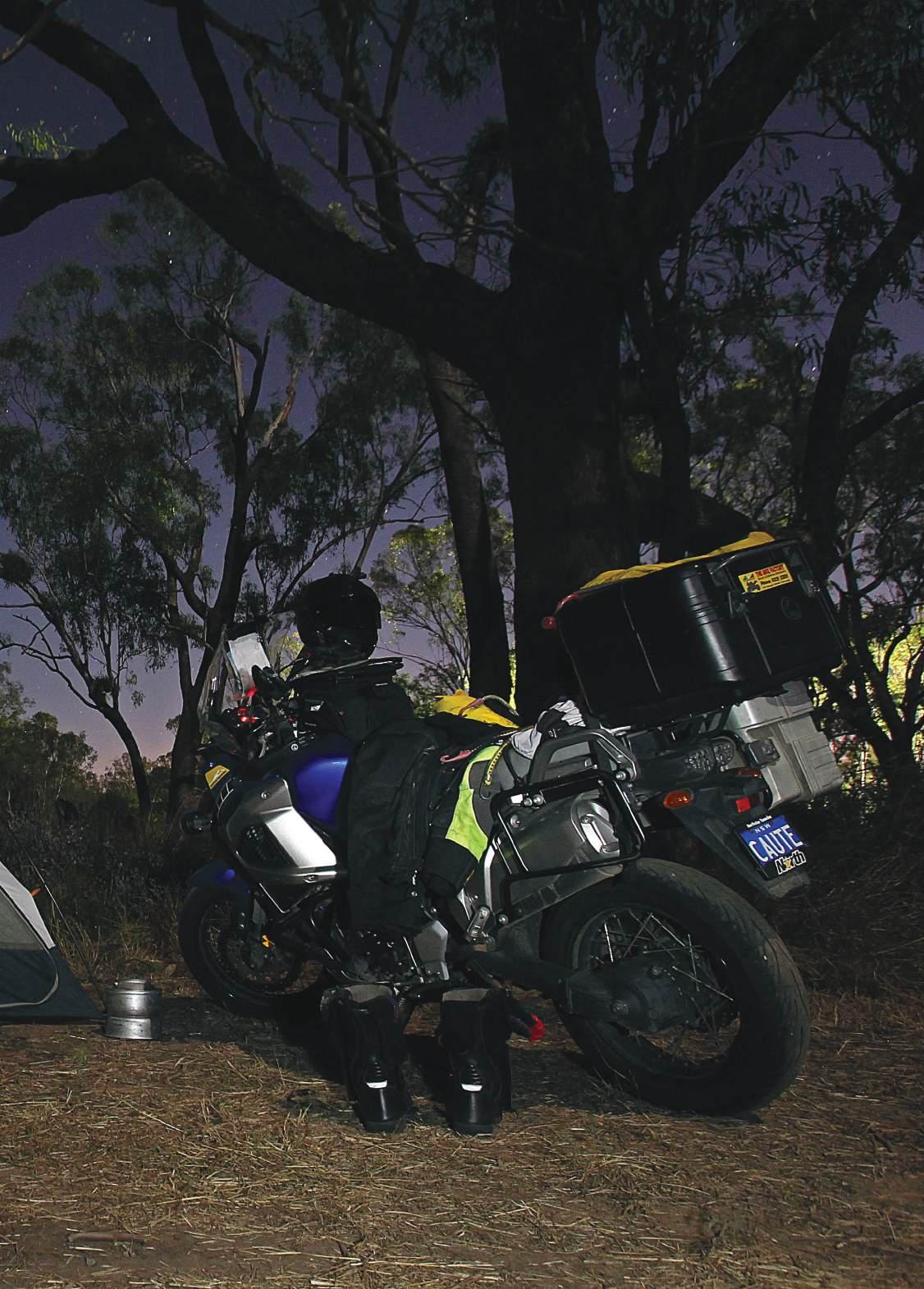 knows this road will tell you there’s more wildlife than Noah’s Ark and our poor photographer, Cain who had limited (or no) off-road experience split a kangaroo in half with the big KTM 990 Adventure R. Some of Skippy’s fur burnt into the plastic fairing as a permanent reminder. Cain stopped and was shaking like a leaf. He didn’t want to ride on, but I said his only option was to continue or be eaten by whatever was out in the darkness – he rode on.