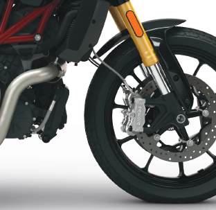 The spoked wheels mount 17” and 19” tyres (respectively 150/70-17 and 110/80-19), measurements that will also satisfy off-road enthusiasts.