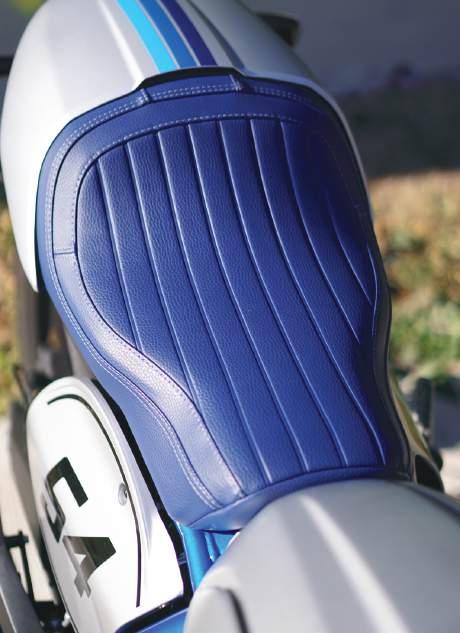 The design of the 23-litre tank (able to guarantee range over 400km) harks back to the tradition of Moto Guzzi bikes kitted out for African raids and boasts some meticulously crafted details, such as the slots on the front section and the recesses just above the engine heads, which appear to be generated by the twin itself. Extensive research was carried out in defining the contact area with the seat, to ensure