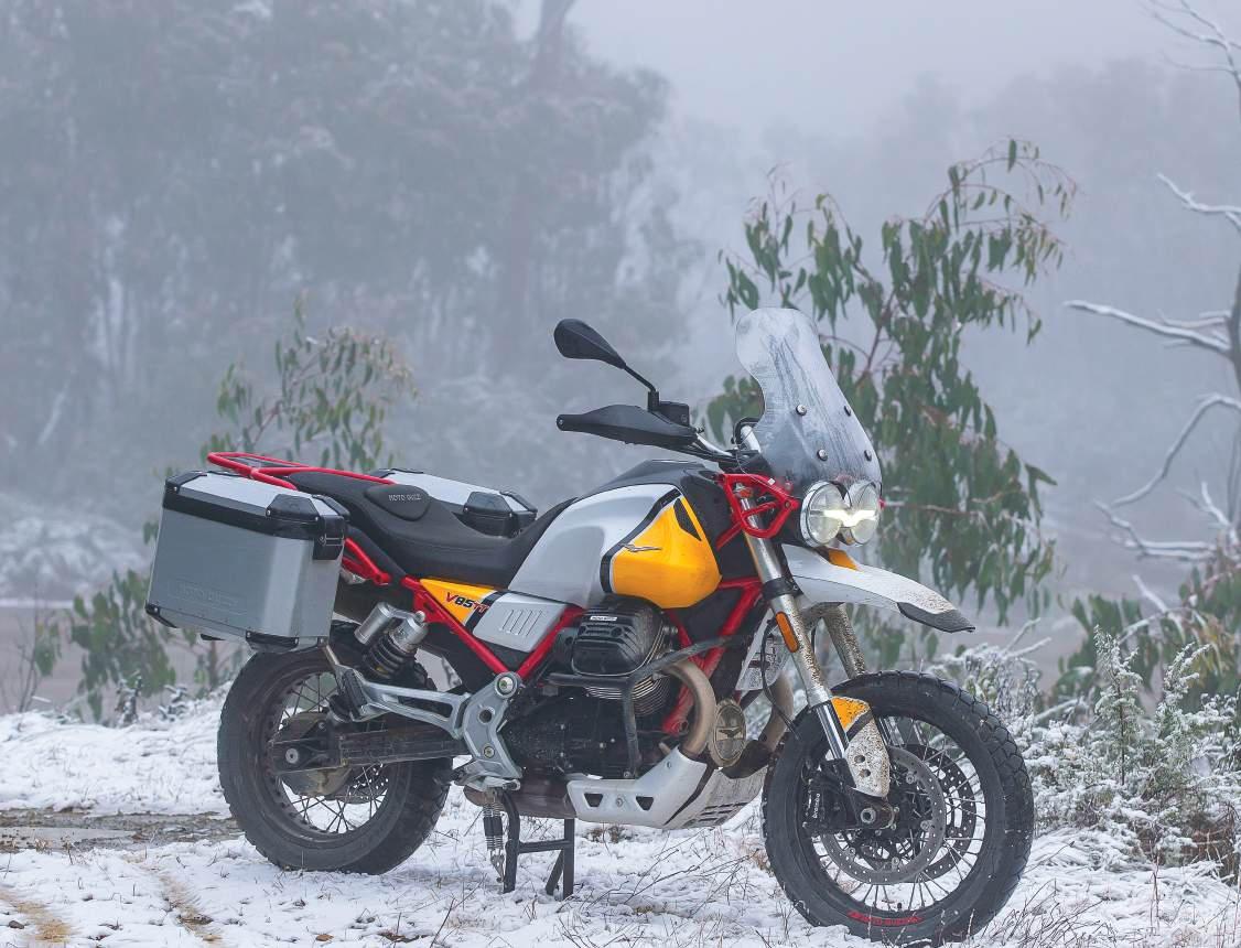 It’s here! Yep, the long awaited Moto Guzzi adventure bike has finally surfaced. Shown some time ago across many motorcycle shows around the world, Moto Guzzi has released the V85TT. Classically styled it’s a machine that grabs a lot of attention. We headed off to the Aussie launch in the Victorian High Country where it snowed – of course!