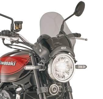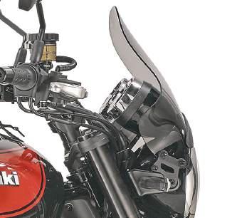 the smoke Plexiglas windscreen, its shape researched in the wind tunnel and to complete the package you of course have to have a pair of handguards.