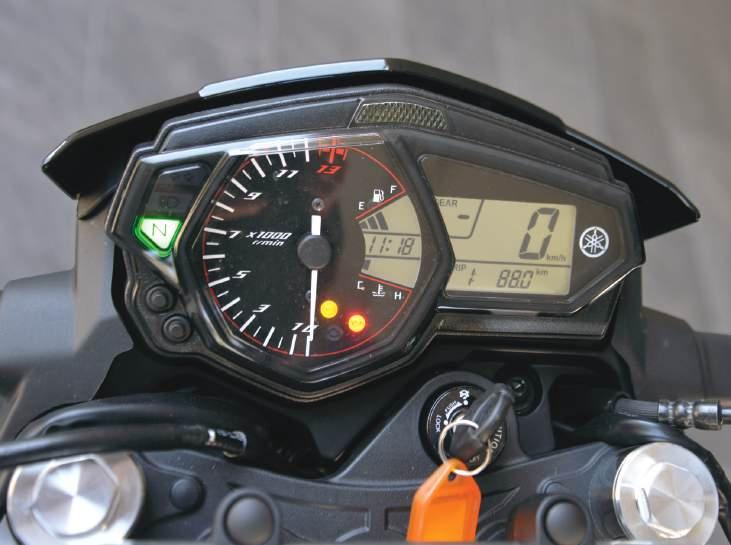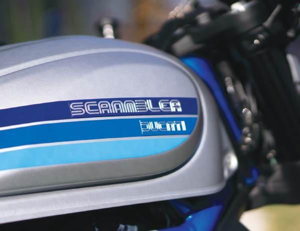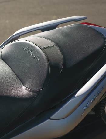 The seat is 830mm from the ground, allowing most sized riders feet to easily touch for optimum control when manoeuvring a stationary bike, also thanks to the compactness of the under body and an overall dry weight 208 kg. The riding position is erect, with relaxed back, legs that are barely flexed and correctly bent arms to effectively grip the wide variable section aluminium handlebar, for total control. Under the seat is a practical