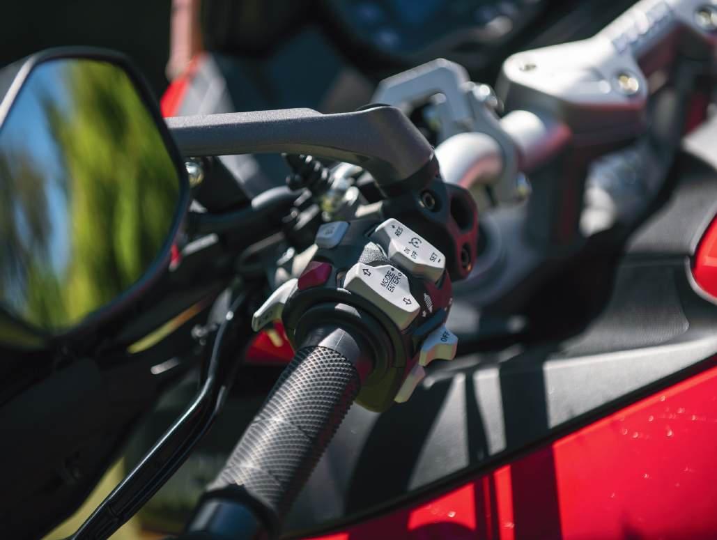 left-side of the ‘bar. Backlit switches are also a handy feature while riding at night. And, speaking of night time riding the LED headlight with its two lights light up the night like a 20 metre Christmas tree at your front door, and when you’re cornering the lights (DCL –Ducati Cornering Lights) move to illuminate that usual dark patch on the inside of the apex.