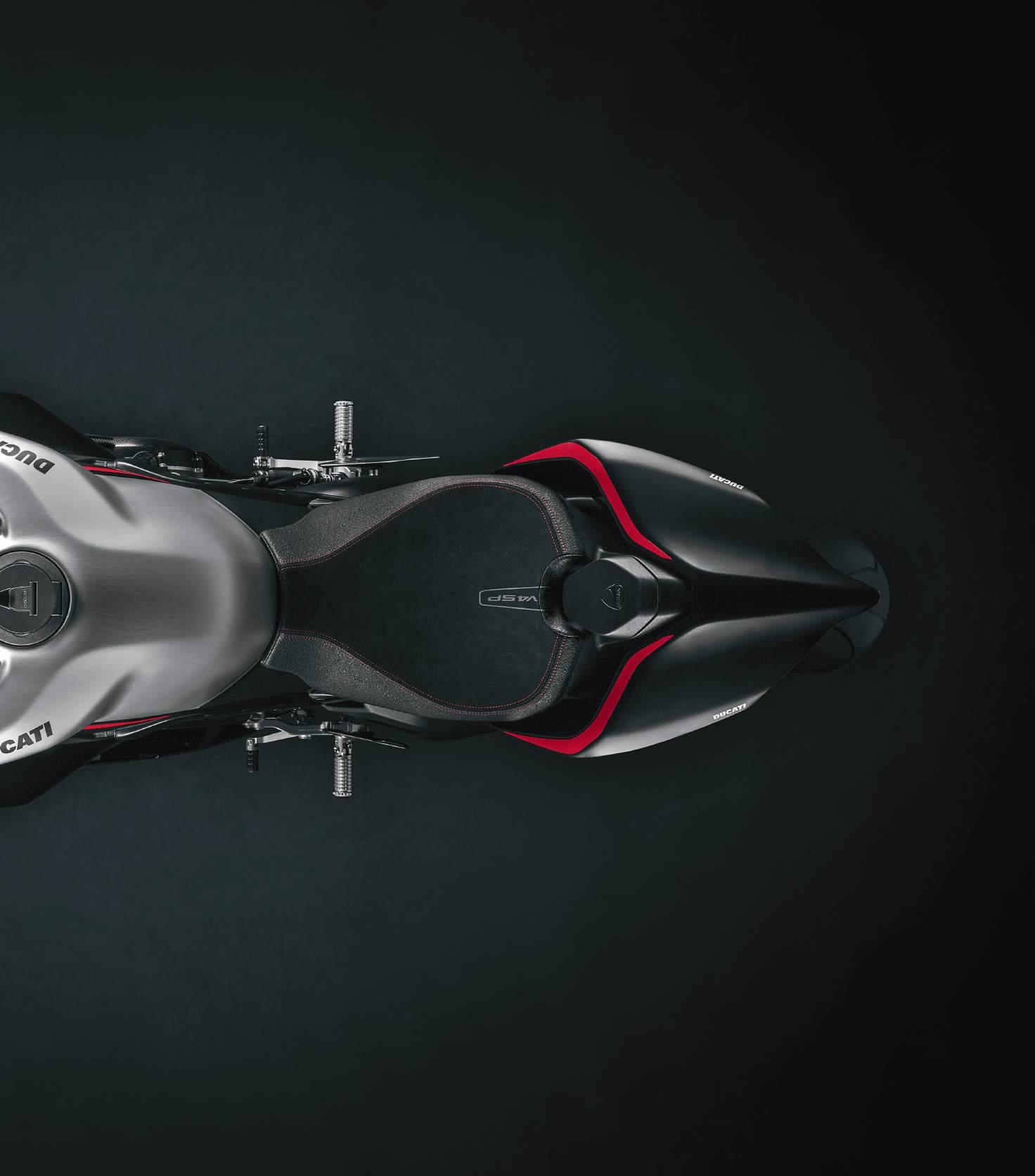 Other than the big Multistrada 1260, there’s not many bikes where you sit ‘in’ a bike as much, this offers a secure feeling with the large wings, tank and handlebar out in front.