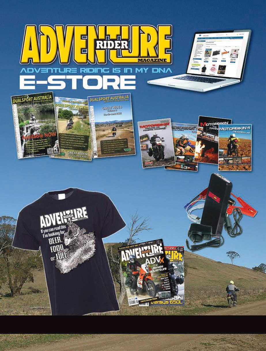 Feel like you’d enjoy this ride? Log on to www.advridermag. com.au/rides and you can download the entire trip as a GPX file with extra track notes – like section distances, accom and where to get fuel. Just load the GPX file into your GPS and retrace the Adventure Rider Magazine team’s every turn of the wheel, taking in the same scenery, the same dirt roads and enjoying the true meaning of the adventure-riding life. Normally the download will set you back $129, but seeing as this is the first one, and the publisher’s still glowing after his four days of supreme adventure riding, he’s offering an introductory deal at only $99.