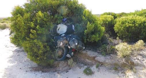 Fortunately, now Mitch has started riding adventure, his friendless motocross days are behind him, and it was a goodhumoured bunch that dragged him from what could’ve been a very ugly position. As usual, the KLR was dusted off, set back on its wheels and finished the event as though nothing had happened.