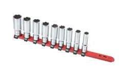 R Includes three universal joints and safety lock extensions in ¼-inch, 3/8-inch and ½-inch square drive