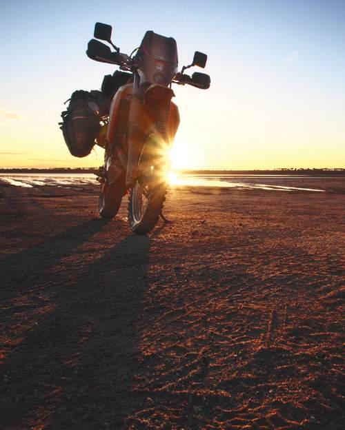 A group of riders who’d heard of the attempt were waiting at the Overlander servo and performed like a MotoGP crew, fuelling the bike and supplying water. Meekathara rolled into view about one hour ahead of schedule and a day of serious riding followed. The KTM990 answered all the questions asked of it, and at 5:00pm bike and rider arrived at Carnegie Station. Good mate Stuart ‘Woodsie’ Woods had called the station, so a meal and refuel were waiting and handled in double-quick time.