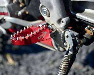 I would say the best way for most riders is to position the arches of their feet over the footpegs, not the balls of the feet. This gives good access to the gear- and rear-brake lever, and the foot is supported well to absorb the rider’s weight and impacts on the bike. It’s really important to slide your foot in, with no gaps, so your boots are snug against the frame.