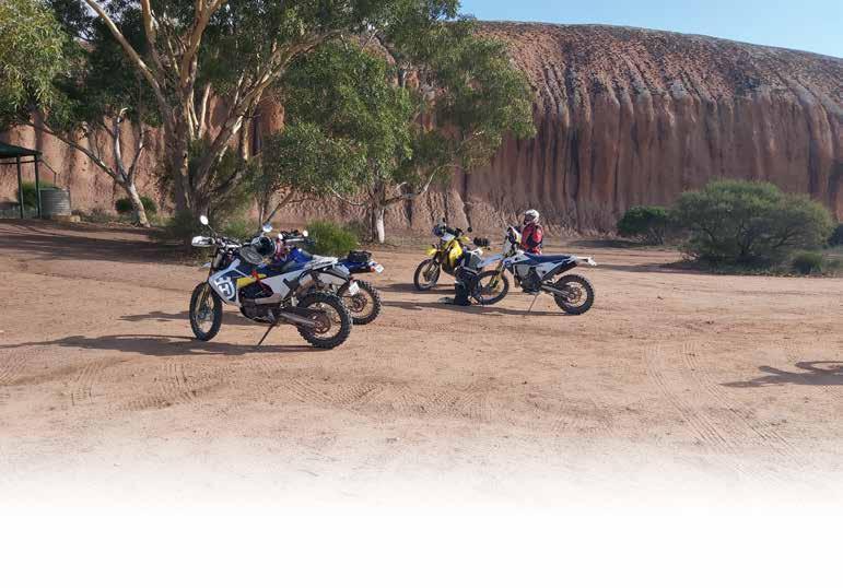 nerves I was feeling about my ability were doubled when I found out one of the other riders, Donna, riding a WR250F, had been a roadbike rider when one day she decided she’d like to cross the Simpson – which she did successfully! I’d already sussed out that Kye had ridden in some serious events like Romaniacs and at Erzberg, so I began to think this ride was going to be way above my skill level. Fortunately, sand skills weren’t called on until the second day, and at any tricky bits Kye was standing by to direct riders on how to tackle it if needed. Apart from some lovely tracks, his passion for the natural and historical environment was what really stood out about the ride. He’d ridden, hiked or kayaked over most of the area and had a great knowledge of the Aboriginal and European history. It was a tour of the local area by motorbike with some stunning scenery, great stories and interesting tracks to tie it all together. They’d gone about things the right way: getting permits to operate in National Parks and state forests, decent food and a good overview of where the toilet and