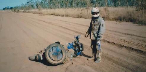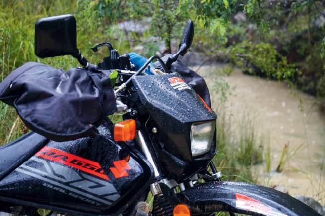 wet weight under 200kgs. For adventure motorcycle travel it is a balance between power (and the more power the better), in proportion to weight (and the less weight the better). Unfortunately, powerful bikes are big bikes, which means they are heavy bikes. Weight is critically important to having fun on your adventure ride. There is no better feeling than using your bike’s power to take you far away from the maddening crowd to behold vistas on top of mountains, up over sand dunes, cruise along trails that wind through forests and across creeks, or feel the tires bite into mud to carry you through bog holes that not even adventure bike manufacturers thought existed. It is in these rugged off-road conditions where you open the throttle and know your bike in all its reliability and gutsy power can do its job. In an ideal world, there are no breakdowns, no punctures; and your bike (which for most will be electric start), always fires. However, even my trusty TT600 in all its rugged simplicity, had its fair share of punctures, minor running issues (worn clutch plates and a sticking