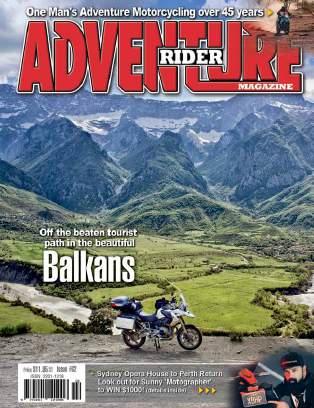 Copyright Adventure Rider Magazine is owned by Clemenger Consulting –Clemenger Media Sales and published by Tony Clemenger. All material in Adventure Rider Magazine is copyright and no part may be reproduced or copied in any form or by any means (graphic, electronic or mechanical including information and retrieval systems) without written permission of the publisher. We welcome ALL contributions but reserve the right to accept or reject any material. While every effort has been made to ensure the accuracy of information, Clemenger will not accept responsibility for errors or omissions or for any consequences arising from reliance on information published. The opinions expressed in Adventure Rider Magazine are not necessarily the opinions of, or endorsed by, the publisher unless otherwise stated.