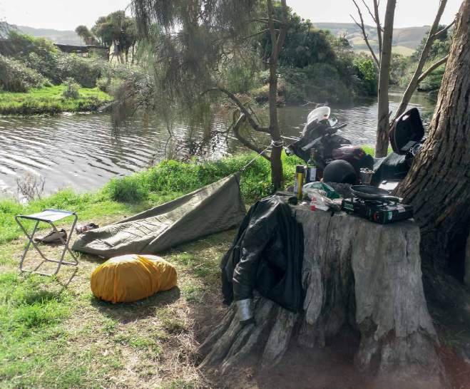 As I rode past campers wet and dirty, I couldn’t help but chuckle; who would be dumb enough to camp in weather like this: suckers.
