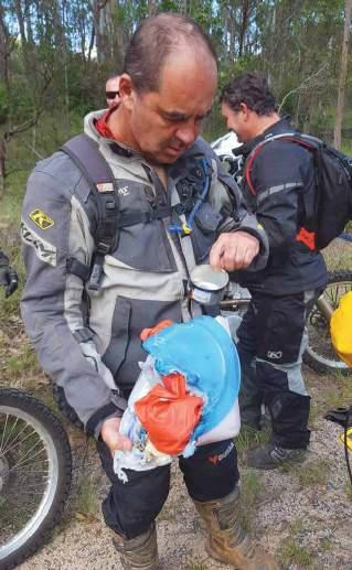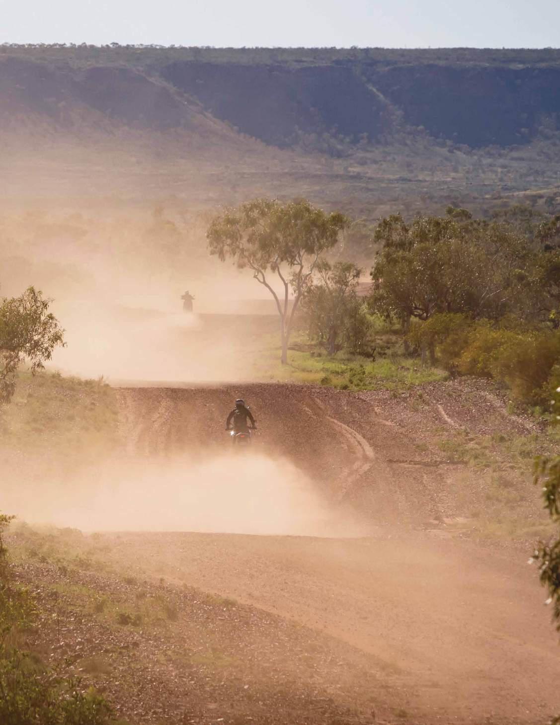 Allan, the owner of the spritely three-yearold DR650, and I left five hours behind the rest of the crew. Leaving late meant, after we hit the Old Strzelecki Track, we had to shortcut across towards Lyndhurst to meet the Fantastic Five. We didn’t make it to town before the ’roos came out to play, so a bush camp it was for the Sydneysiders.