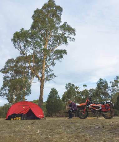 forward. The wind and rain are hammering us, but we, the bike and I, meet it head-on, tough it out, and master it, arriving shattered at a deserted campsite where there’s dry wood and shelter. The sleeping bag has stayed dry, and with the fire crackling away there’s coffee and sugar in a cup and a lamb-with-mint-mashed-potatoes dehydrated meal waiting beside it. As the night closes in, I stretch out and think how life couldn’t be a whole lot better. Maybe I’ll run a spanner over the bike, more out of affection than need, then get some sleep before heading off in the morning.