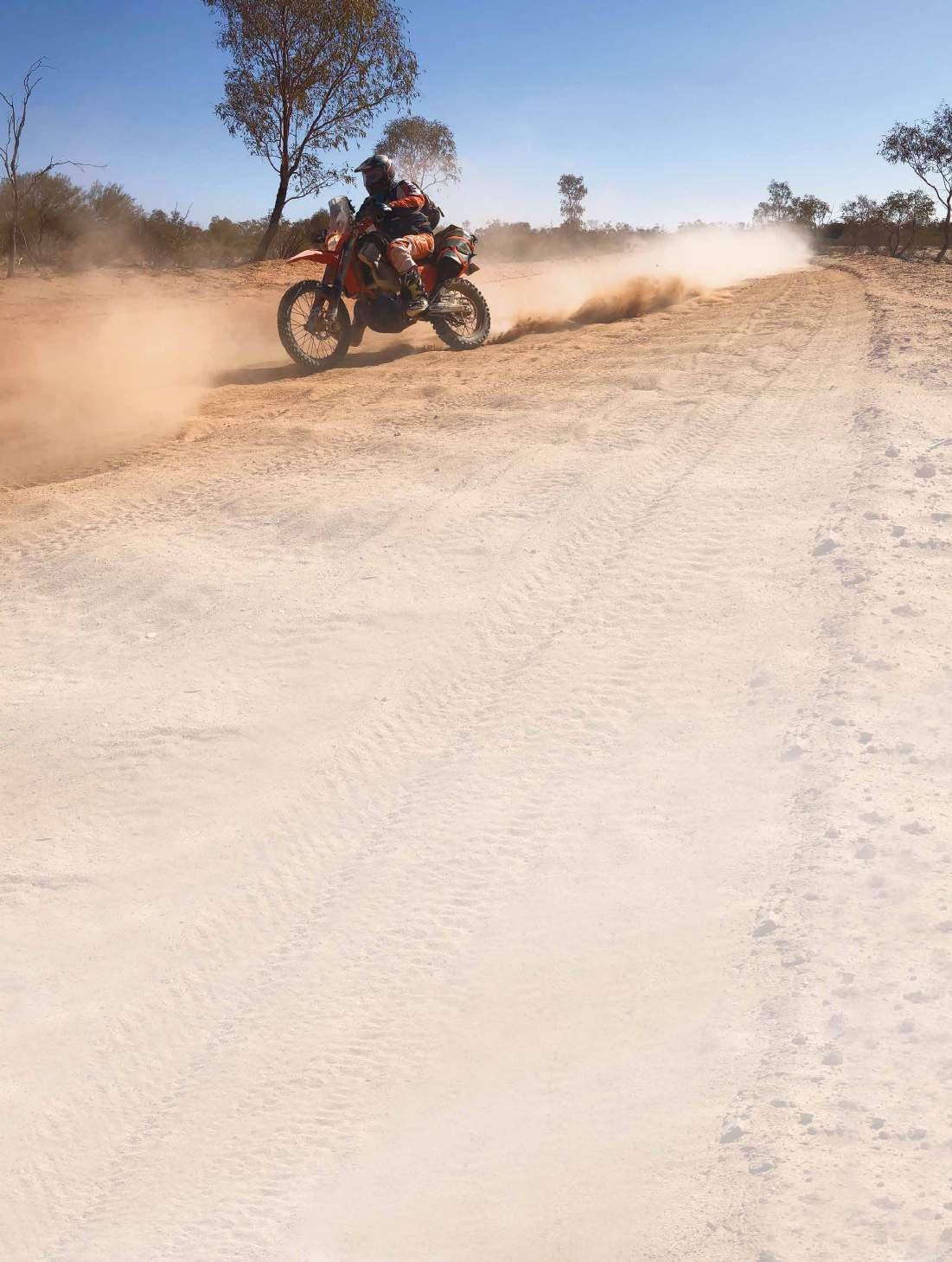 The crew consisted of Allan on a DR650, Adam on a 500EXC, Scott with a Husky 701, and Mick, Greg, Dave and myself all on 690s. And yes, we had spares, including fuel pumps and an injector. The tyres of choice were from the Motoz range. We had Tractionator Deserts, Tractionator ITs and Tractionator Adventures.