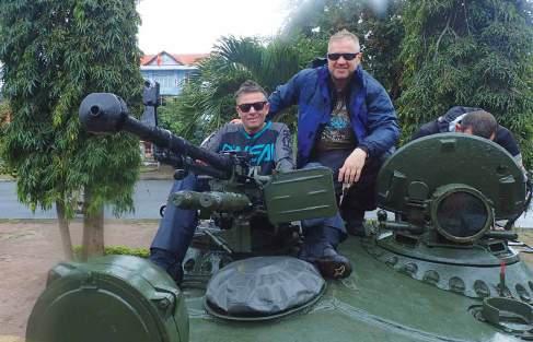Next stop was a coffee break adjacent to a village park proudly displaying the might of the Russian and Chinese tanks used by Viet Cong during the war. While not riding, Gerry was still able to crash to the ground, landing squarely on his gluteus maximus when his Havaianas gave way on the slippery stairs, bruising both his bum and his pride.