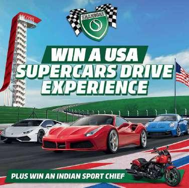 Shannons are giving motoring enthusiasts the chance to win a trip for two to the USA to drive some of the world’s best supercars around the famous Circuit of The Americas racetrack and exhilarating Las Vegas racetrack. You could find yourself behind the wheel of a Ferrari, Lamborghini, Porsche, ChevroletCorvette and a Ford Shelby.