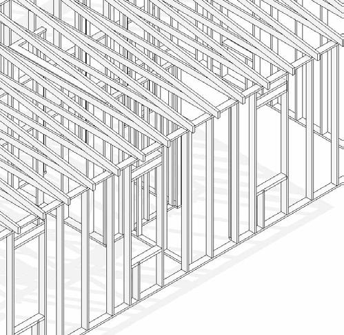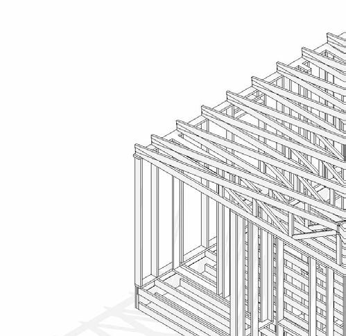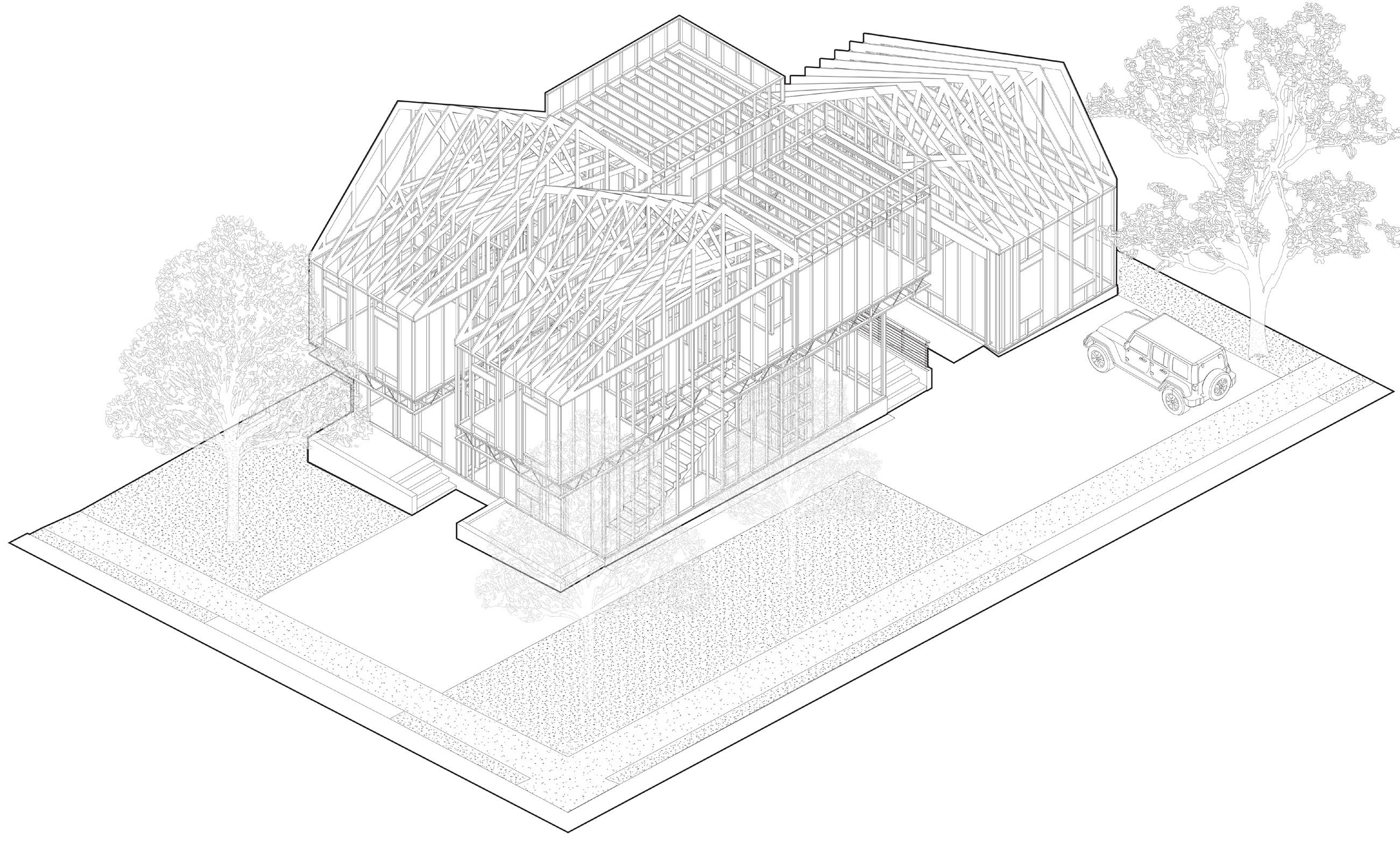 The exterior cladding of the home for the walls is intended to be as simple as possible for the area, utilizing a system like board and batten siding and steel roofing and siding, materials commonly applied to homes in this area. Additionally, prefabricated elements are used where possible, like in roof and floor systems to expedite construction. Insulation is kept just above code minimum in this section in order to qualify for EnergyStar rating here in SC and receive lower cost power from our local provider.