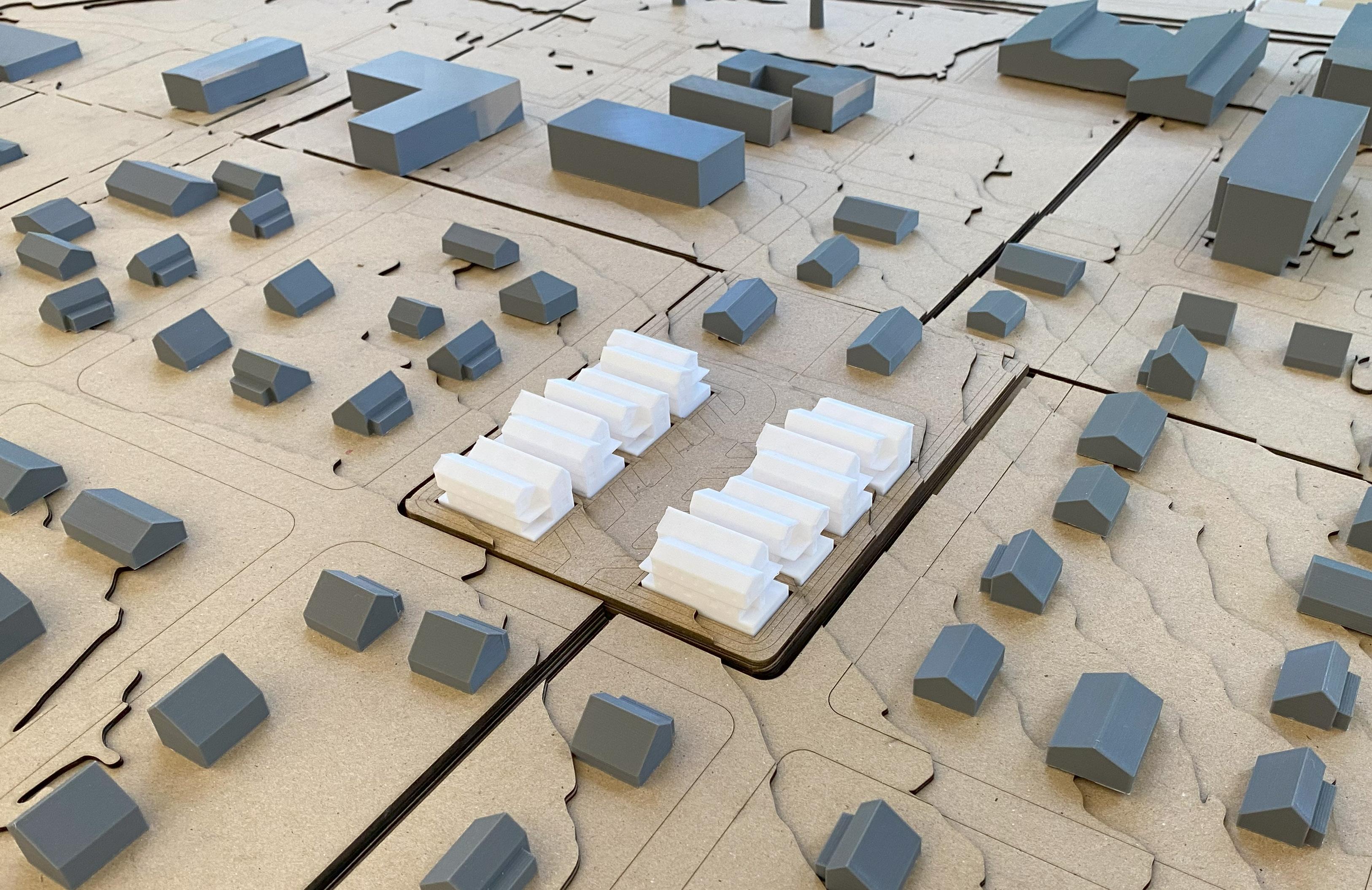“Poe Mill Community Housing proposes a model of building homes that leverages both emerging technologies like modularization as well as setting up a model of housing where extended families and communities can come together to help house one another.”