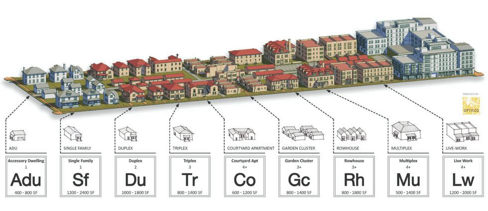With the ideal range being established between 6.0026.00 du/ac, this narrows down the typologies of “missing middle” housing considerably. Based on lot size, depth, vehicular access, zoning requirements, and area character, we can choose what typology is most likely to succeed on a given site.