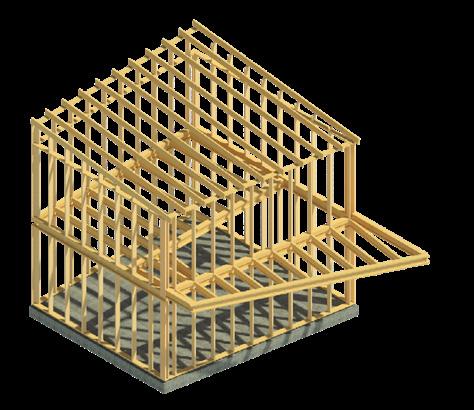 The structure of each duplex is exactly the same and features a floor truss system as well as two different roof trusses. There is also a third truss system that operates as both a floor and roof truss and also allows both duplexes to stay connected while adapting to the different site elevations and slopes that each of the three duplexes face.