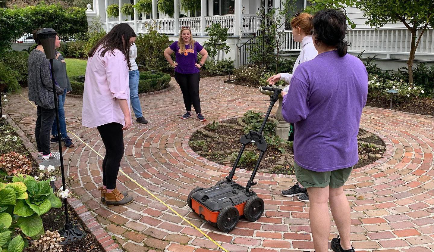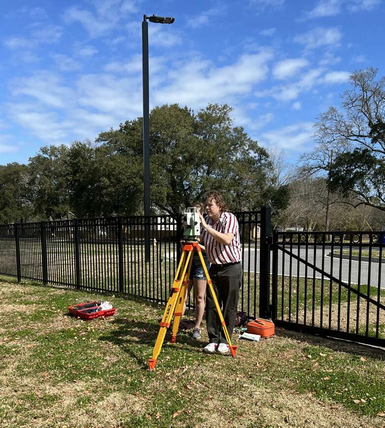 The documentation of Evergreen Cemetery began with the Charleston Public Library’s South Carolina Room Assistant Manager Lish Thompson, South Carolina Room Library Generalist Charlotte Smith, and James Island Councilwoman Anna B. Johnson. With their guidance, students used mapping and surveying technology including laser scanning with a total station, GPS collecting, and the Survey123 app. Each student transformed the recorded data into a digital measured drawing.