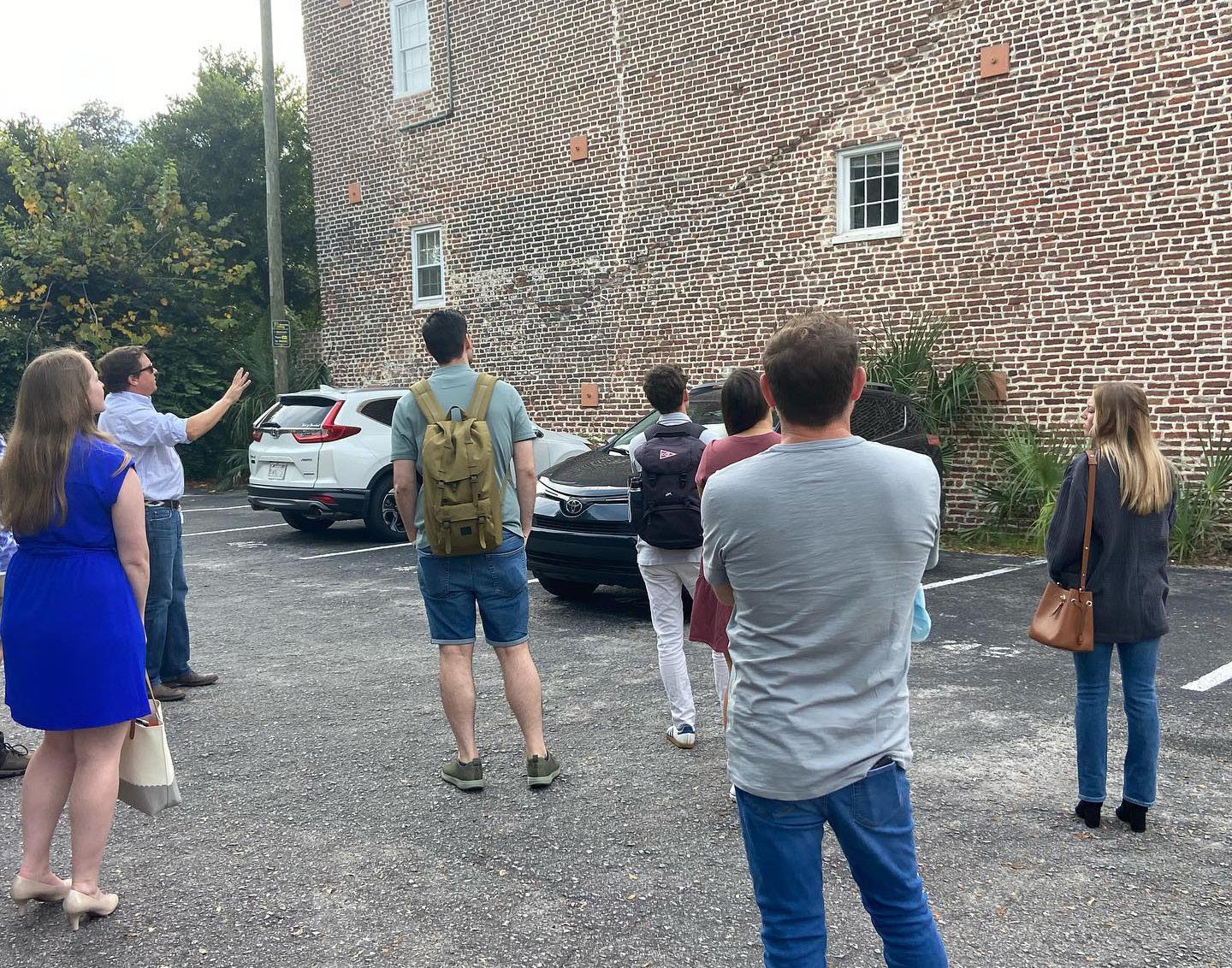 During the Fall 2021 History and Theory of Historic Preservation class, students were split into three groups and assigned to work at South Carolina Society Hall, Mount Zion AME Church, and the Huguenot Society of South Carolina in Charleston to write a Preliminary Information Form (PIF), an informational form that makes a case for a site’s eligibility on the National Register of Historic Places (NRHP). This project required both research and field visits. Students captured photographs of the site and created interior and exterior architectural descriptions, as well as a statement of significance that conforms to one of four required standards outlined by the NRHP. Once the forms were completed, they were sent to the South Carolina’s State Historic Preservation Office (SHPO) for nomination review. South Carolina Society Hall, pictured here, received a letter back from the SHPO confirming its eligibility for the NRHP and students are currently working on the rest of its nomination.