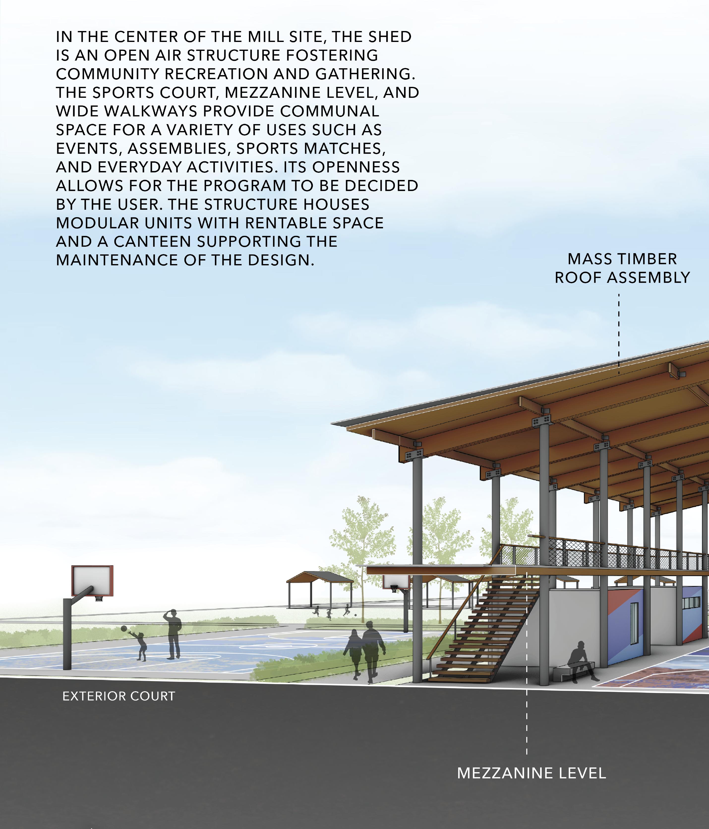 The mission of the design is to strengthen and foster Poe Mill’s cultural identity through recreational and flexible programs. These programs have long been needed for the neighborhood. Back when the mill village was founded many of these elements were facilitated by the Mill Company. However now decades after the mill has closed they have all but diminished or been established outside of the neighborhood. Giving a cultural foundation back to the community through these spaces will help Poe Mill grow to its full potential in an economically healthy way.
