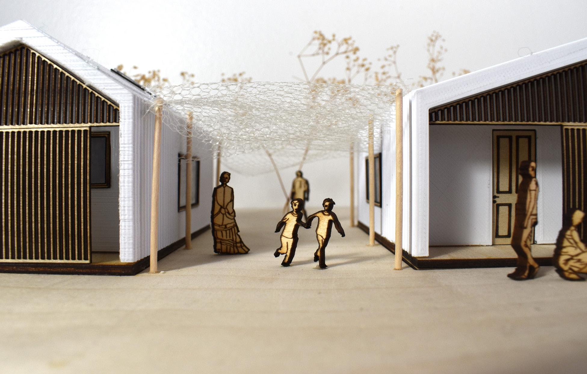 The use of the duck cloth fabric pattern as a grid system in the site plan design of a project not only adds a historical narrative to the architectural design but also connects deeply with the site's past. This pattern serves a dual purpose by offering a practical advantage in systematically organizing spaces and structures, promoting efficiency and effective spatial organization. The residences stand opposite each other, featuring open and inviting porches, fostering a sense of community while prioritizing safety. By drawing inspiration from the historical context, the grid system not only serves as a practical tool but also honors the site's legacy, seamlessly integrating the project within its cultural and historical milieu.