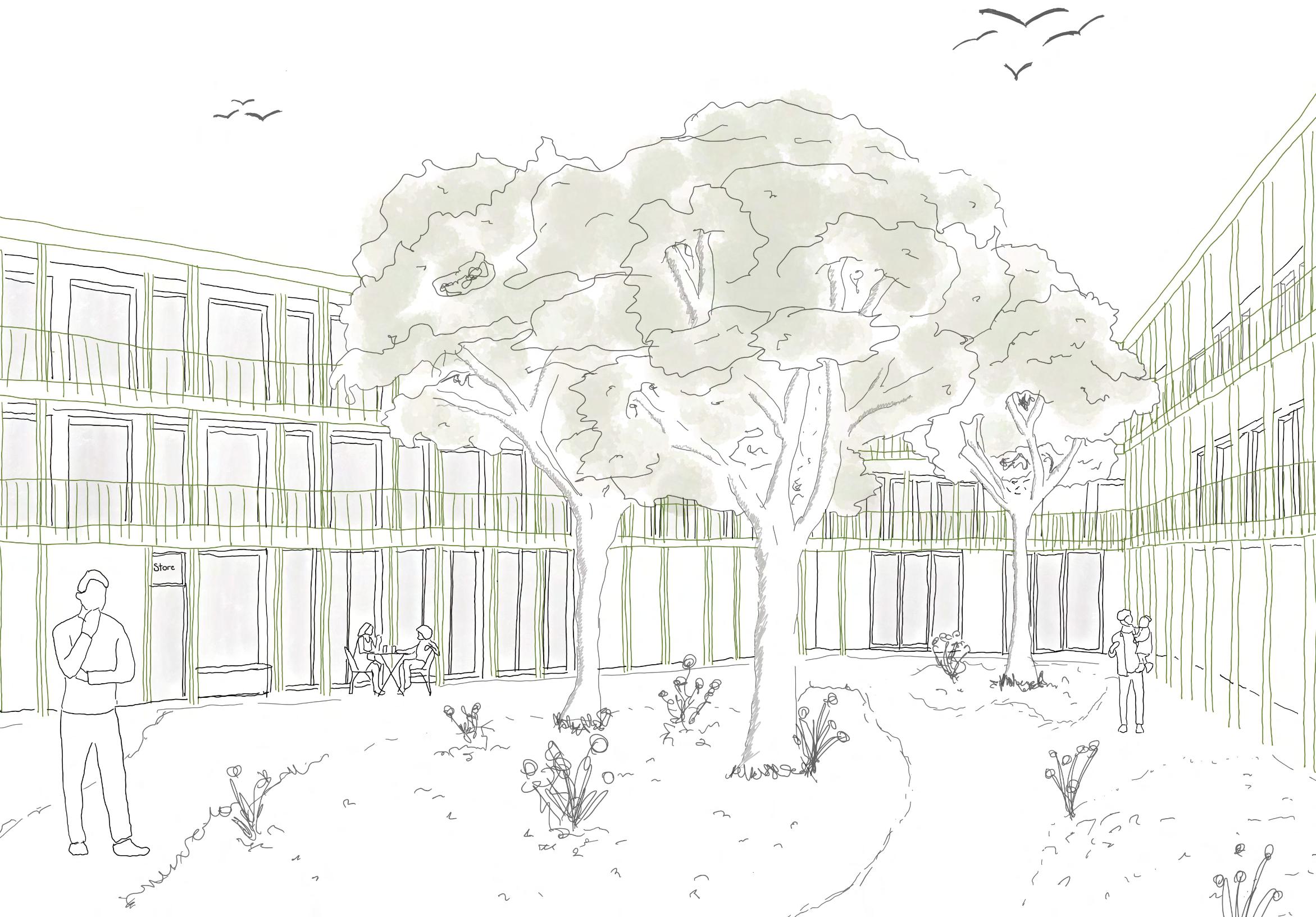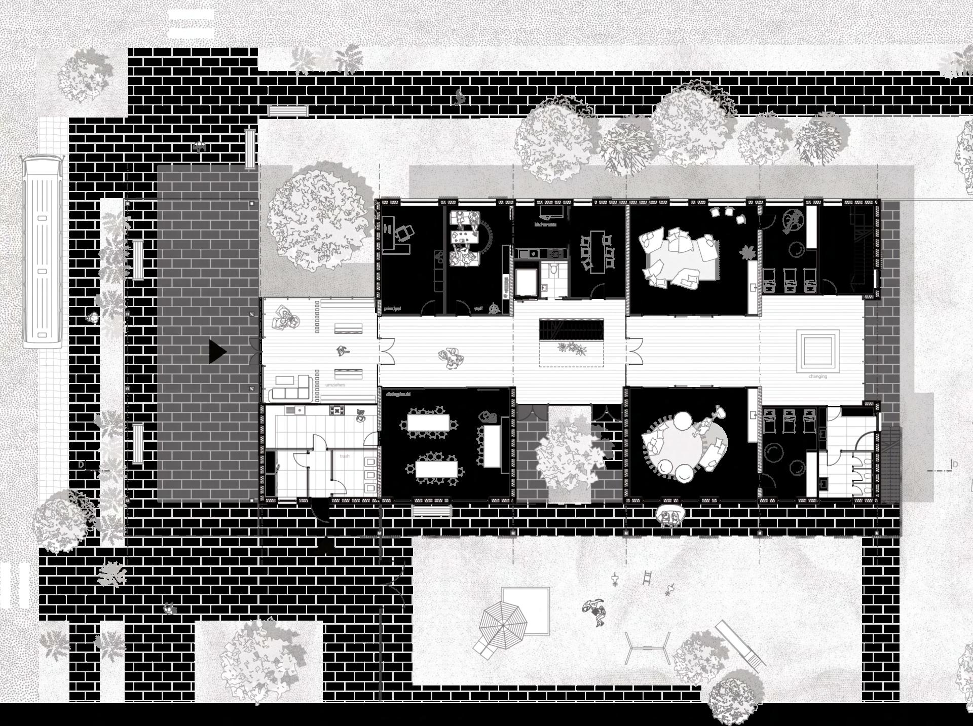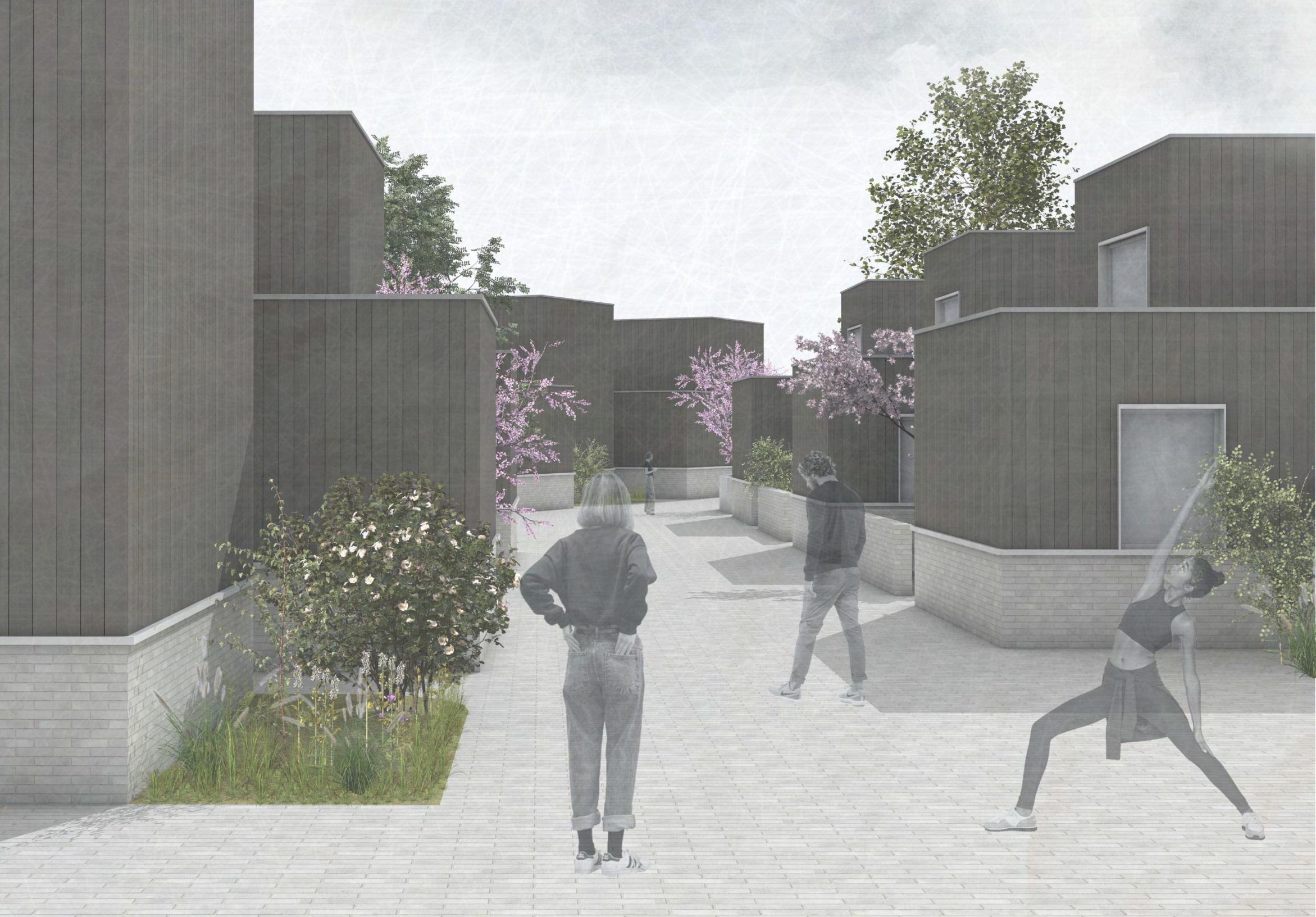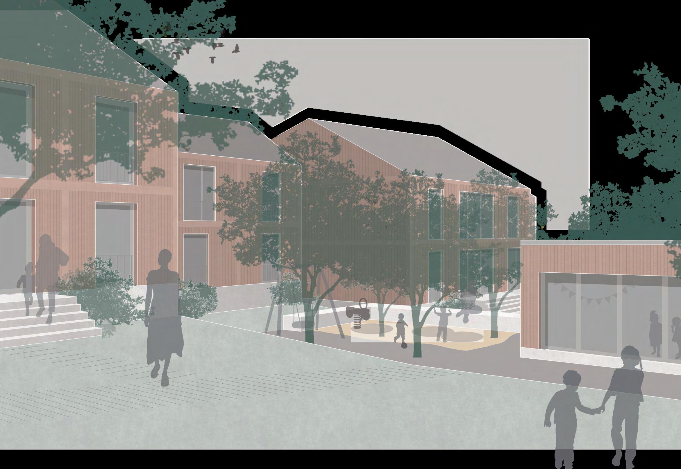 Iconicplaces,suchasthechurcharea,andhistoricplaces,suchasthesiteoftheformer schoolbuilding,arestrategicallyincorporatedtocommunicatetheemergenceofnew possibilitiesandinviteresidentstoengagewiththisevolvingspace.