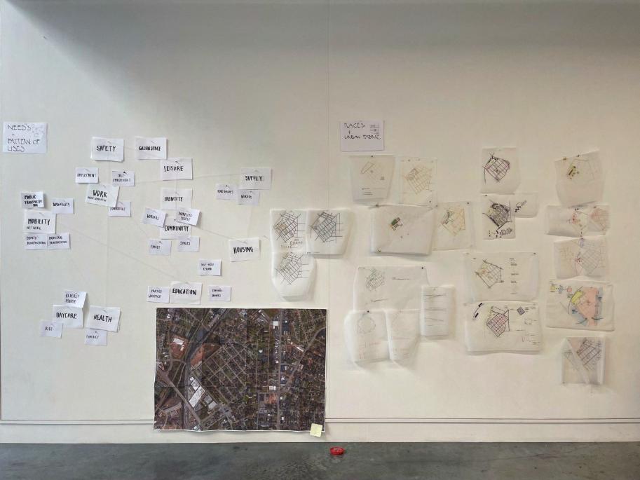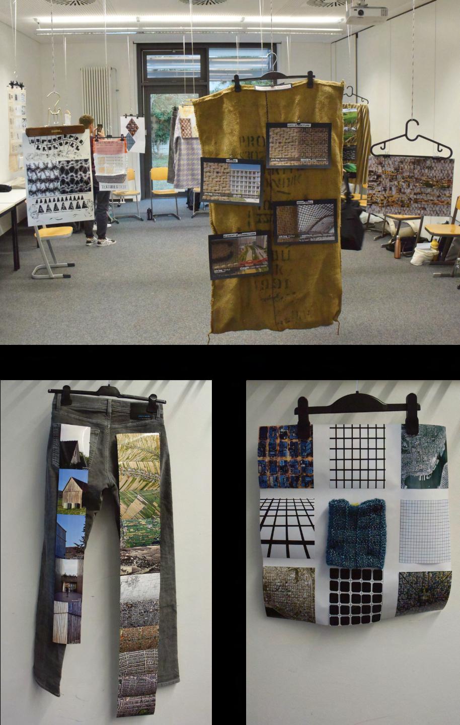 Inafirstdesignstepandprologuetothesemester,thewholegroupchose13differenttypes oftextilefabric-createdbyweaving,knittingortyingthreads.Eachofthegroupthenused hisorherfavoriteexampleandrelatedittoaconstructionorsettlementstructure-e.g.a streetorcitylayout,afacade,afloorplanetc.Toillustratethis,everyonecreatedaphysical interpretationoftheiranalogyforaphysicalexhibition.Thepresentationformatwasfreely chosen,resultinginadiversemixofresultswhichwerepresentedbyhangingthemon clotheshangers.