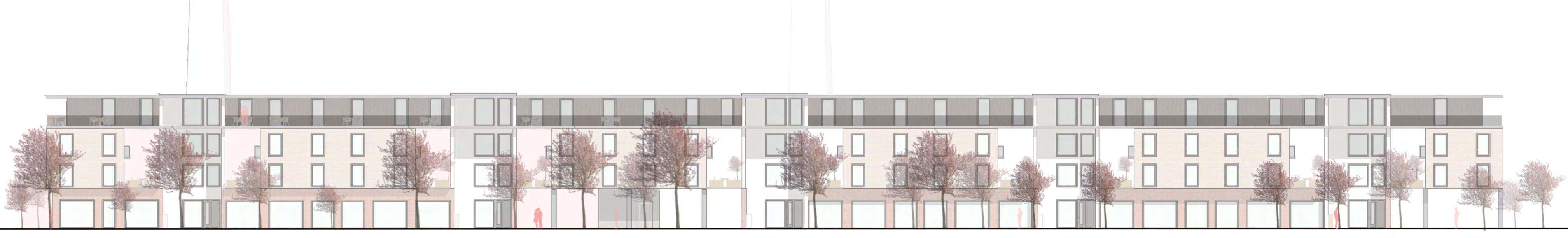 Thedesignintentionallyaddresseseffectivenoisecontrolalongthetracks,focusingon buildingswhichshieldtheinternalparkinordertocreateasereneenvironmentwithin.