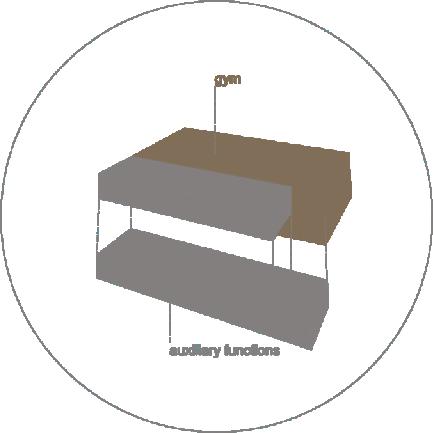 Thegymnasiumismultifunctional,servingtheschool,the daycare,andthecommunity,providingspaceforplay, presentations,andgatheringsduringtheday,andfor communityeventsintheeveningsandonweekends.