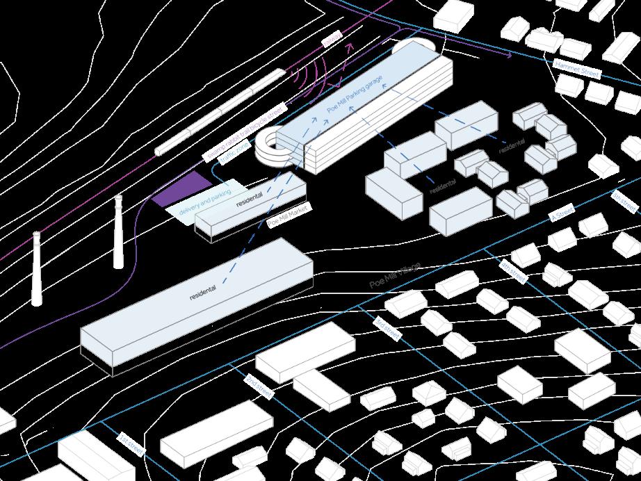 ThetimeinSouthCarolinawasalsospentinstudioatClemsonUniversity. Projectgroupsof2-5peopleanalyzedthePoeMillneighborhoodto identifyexistingdeficienciesandpotentialopportunities.Thiscomprehensive analysishelpedtodevelopabetterunderstandingoftheneighborhood's challengesasaresearchbasefordevelopinginitialurbandesignconcepts forPoeMill.Eachgroupfocusedondifferentaspectsinordertogenerate diverseandinnovativeapproachestoredevelopingtheneighborhood. Theseconceptsweredevelopedinto4comprehensivemasterplansolutions, whicheventuallyformedtheframeworkforindividualprojectsinthecourse ofthesemester.