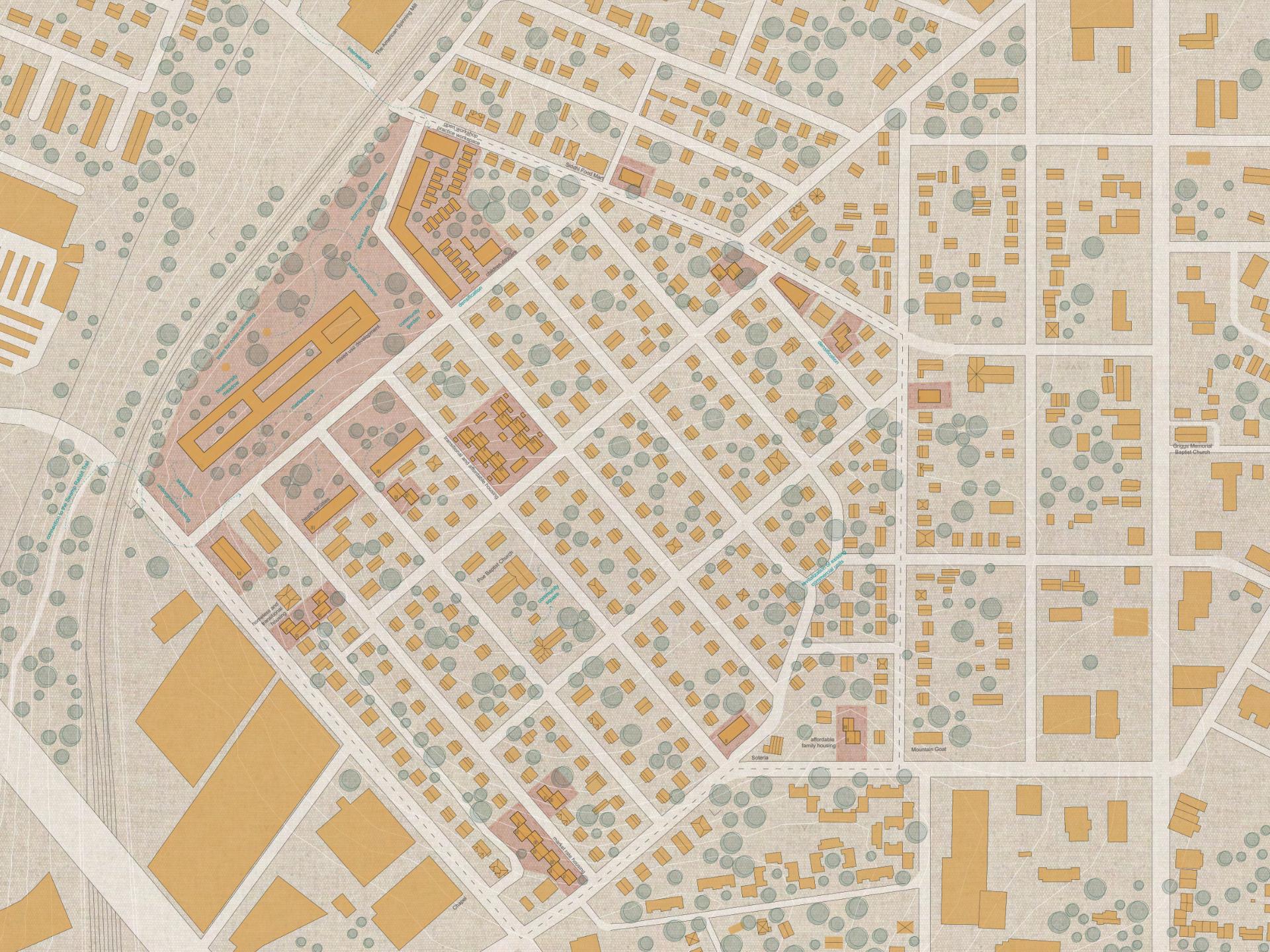 Theareahasnotyetbeenreshapedbyinvestors'plans,butinthenearfutureitwillundergo significantchangesduetonewplanning-ascenariowhoseconsequencesforthelocal communityarenotyetforeseeable.For-profitdevelopment,gentrification,and displacementarethreatsthatrequirecarefulandcreativeplanning.Theformertextile factoryPoeMillwithitsMillVillageisabuiltexampleofsocial,economicand technologicaltransformationprocessesthatfundamentallychangetherealitiesoflife: Changesareoftenperceivedasthreateningandthereforerejected.However,apositive andoptimisticapproachtochangeistheprerequisiteformasteringthechallengesofthe presentandthenearfuture:Forarchitects,newplanningoptionssuchasre-use,conversion, extensionoreventhedismantlingofexistingbuildingsarebecomingthenewreality.