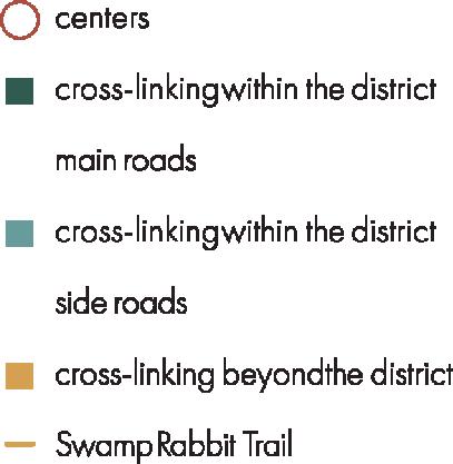 Attheformermillsite,alotofpositivepotentialscometogether,thereforeitsdevelopmentis animportantpartofthismasterplan.IncludingtheOrangeLineoftheSwampRabbitTrail intothenewdevelopment,threecommunityspaceshavebeencreated.Buildingswith publicusessuchaseducation,healthcare,cafes,parkingandcommunityactivities enhancetheareaforexistingandnewresidents.Thecentralaccessrouteiselevatedin somepartstoformwhatthisprojectcallsthe'Highline'.