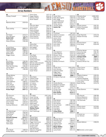 33 Rose Ballard Karla Costin Pam Daniels Donna Forrest Amy Geist Amy Geren Leah Roper Lindsay Welker Carrie Whitehurst 34 DeShawn Brown Shereitha Clay Laura Cottrell Heather Crowe Kathy Hume Morgan McMinn Melissa Miller Lacey Shafer