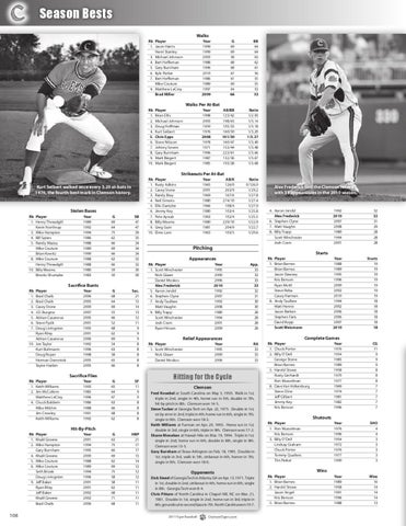 Strikeouts Per At-Bat Kurt Seibert walked once every 3.20 at-bats in 1976, the fourth-best mark in Clemson history.