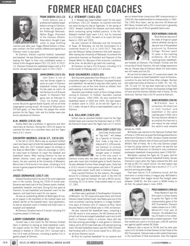 LARRY CONOVER (1920-21) Conover was a line coach for the Clemson football team in addition to serving as head basketball coach. He played center for Penn State’s football team and lettered in football in 1916 and 1917. Conover had a fine 10-4 mark at Clemson, including a perfect 6-0 in games played at Clemson.