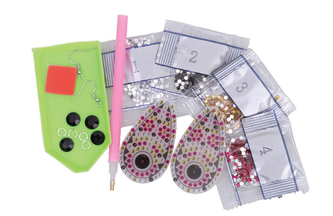 Materials make 1 pair of Gem Art Earrings. Measures approximately 3.5 x 8.5cm (including hook) when assembled. Pliers are required to complete this activity (sold separately). Colours may vary.