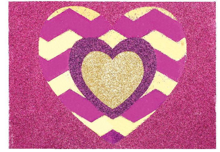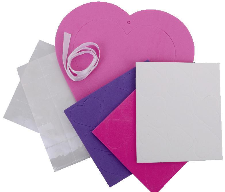 Self-adhesive. Assorted colours, shapes and sizes. Supplied in sheet form. Largest sticker measures 4cm in diameter. Colours may vary. Foam Glitter Heart Stickers