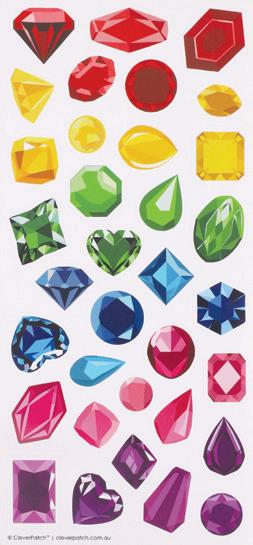 Self-adhesive. Assorted sizes and colours. Supplied in sheet form. Largest sticker measures 3.5 x 3cm.