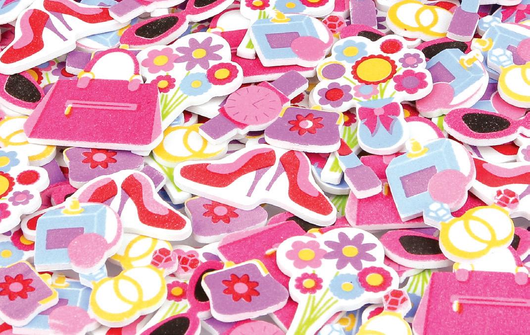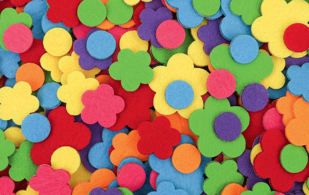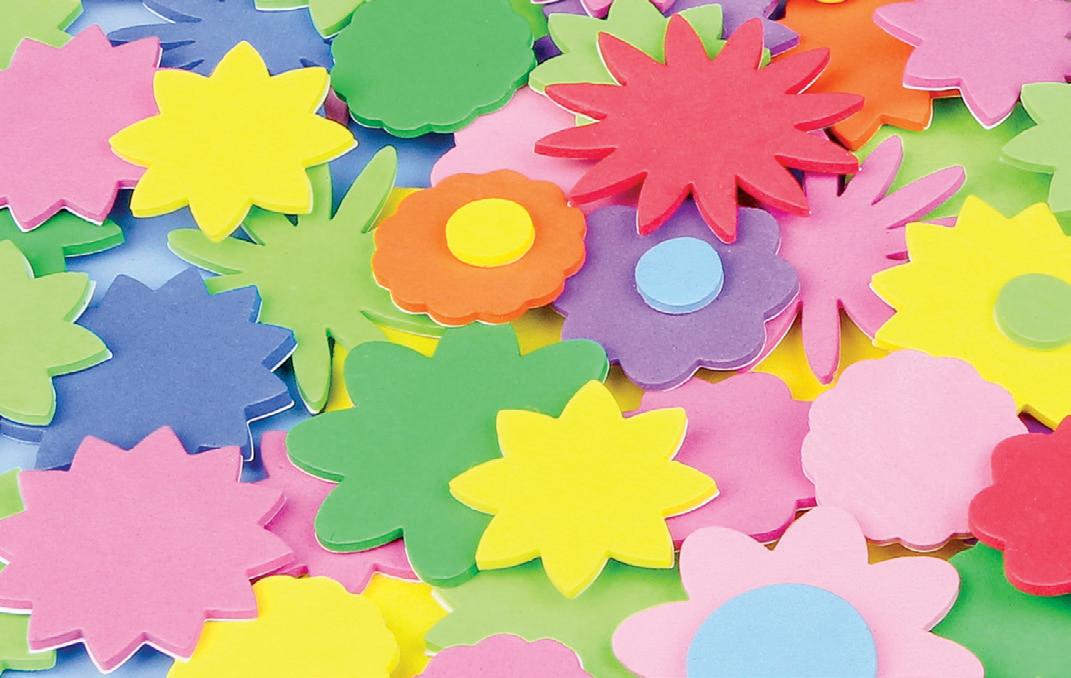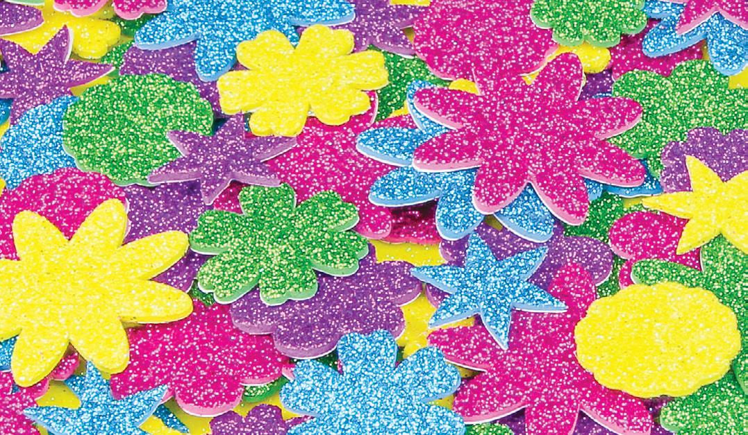 Self-adhesive. Assorted sizes, colours and designs. Largest sticker measures 3.5 x 3cm. Foam Glitter Flower Stickers