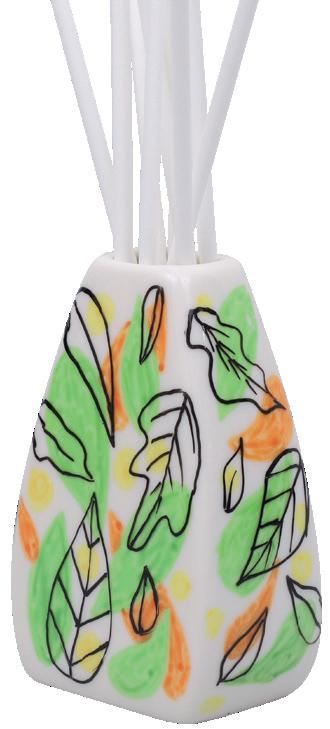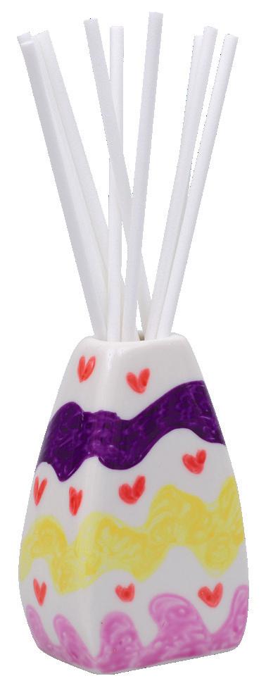 Plain for you to create. Glazed porcelain. Includes 10 reeds. Decorate with our CleverPatch™ Glass & Porcelain Markers. Once decorated, use with fragrant oil (not included). Measures approximately 5 x 3 x 15cm (including reeds). Supplied in an individual box, perfect for safe handling and gifting!